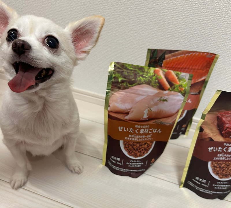 新しいフードに切り替える時「全く食べなかったらもったいない」と悩む飼い主さんは多い。「ぜいたく素材ごはん」ならチワワのおよそ数日分の少量サイズがあるので、気軽にお試しができてうれしい!