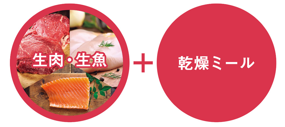 ※1 製造時に乾燥粉末原料ではなく生肉原料を直接配合しているということ