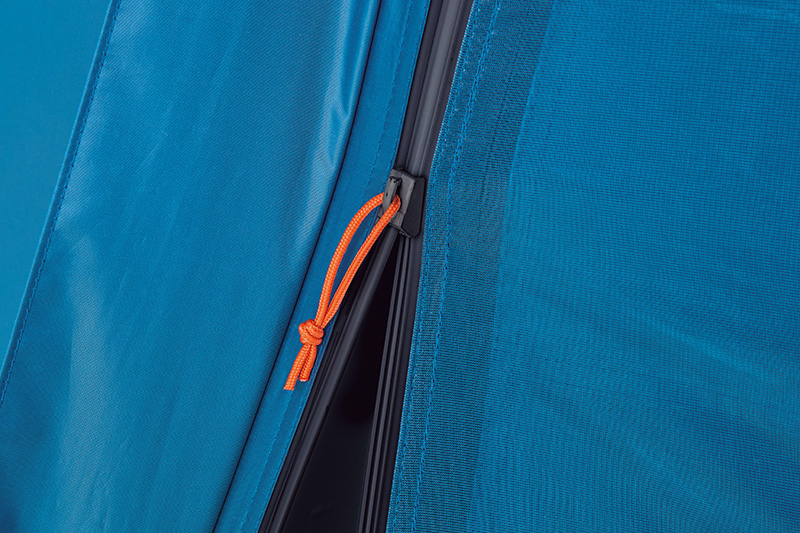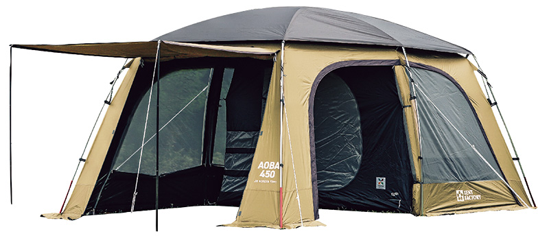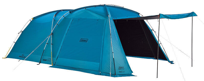 強い日差しを遮って、テント内の温度上昇を抑える生地を採用した2ルームテント。前方に張り出すひさし部分は倍の長さに延長できるので、涼しい日陰を広げることが可能だ。メッシュ窓採用の前室は広いので、愛犬の居場所にも最適。