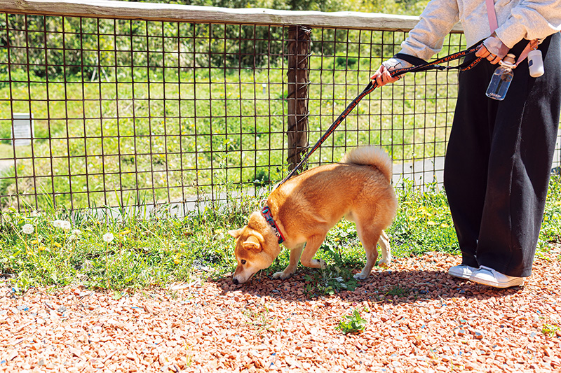 到着したら、まずドッグフリーサイト内に食べてしまいそうなものが落ちていないか、一緒に歩きながら確認したい。草や木の実、虫の死骸、野生動物のフンなどに注意が必要だ。確認してから愛犬をフリーにするように。