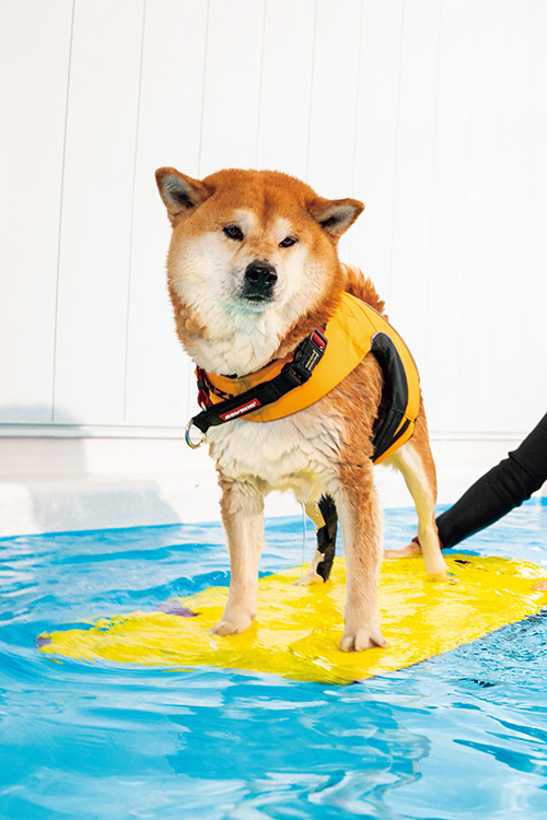安全に泳げる場所でなら、ボディボードなどを使った遊びにチャレンジしてみてもいいだろう。水に浮かべたボードに犬を乗せ、バランスを取る感覚を楽しませてみよう。ボードから下ろした後、自分からボードのほうに寄ってきて乗りたがるようなら、この遊びが気に入った証拠。あわせて飛び込みなども教えてみよう。