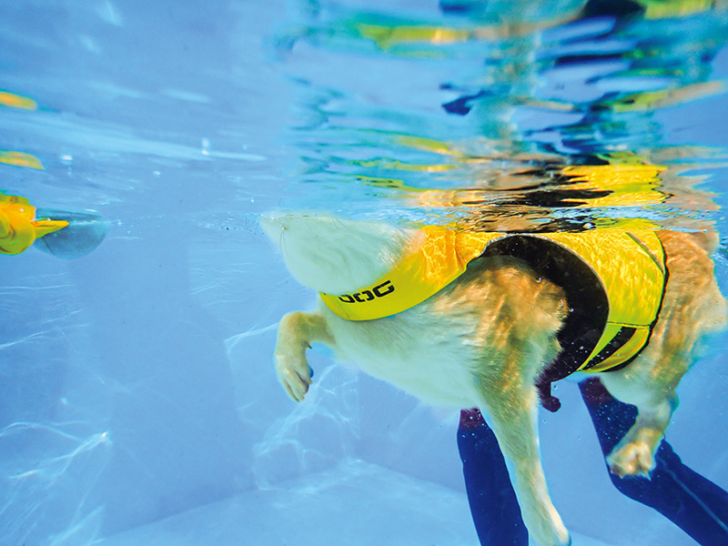 愛犬がオモチャ好きなら、いつもしている遊びをアレンジするのがおすすめだ。水に浮くオモチャを投げてレトリーブしたり、ヒモ付きのオモチャを人が引っ張り、犬がそれを追いかけて泳いだり。人と遊ぶ楽しさに加えて運動量も増え、犬の満足度もアップするはずだ。