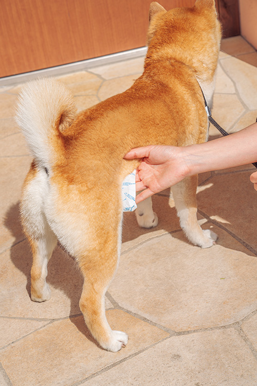 日が出ているうちは散歩に行かないのが基本だが、帰宅後ハアハアと暑そうにしていたら、まずはクールダウンを。水を飲ませたり、内股部分を冷やして様子を見よう。ゴハンを与えるのは、ハアハアしていた呼吸が落ち着いてからである。
