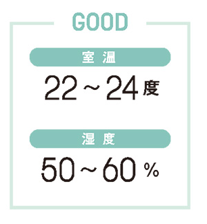 愛犬が過ごす部屋の温度設定は、その部屋の広さに対してエアコンのサイズがどうなのか、新しいか古いかによっても違ってくる。効きが悪ければ、温度を低めにする必要がある。理想とする室温と湿度の目安は下の通りだ。