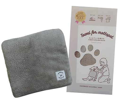 吸収力抜群で、ドライヤーの時間を短縮できるマイクロファイバー製。爪や被毛に引っかかりにくいパイルカット加工済み。